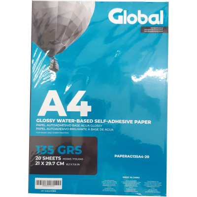 Papel Autoadhesivo Glossy en resma de 20 hojas A4 (210 x 297 mm.) de 135 Grs. - Global Electronics