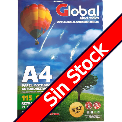 Papel Autoadhesivo Base Agua Glossy en resma de 20 hojas A4 (210 x 297 mm.) de 115 Grs. - Global Electronics